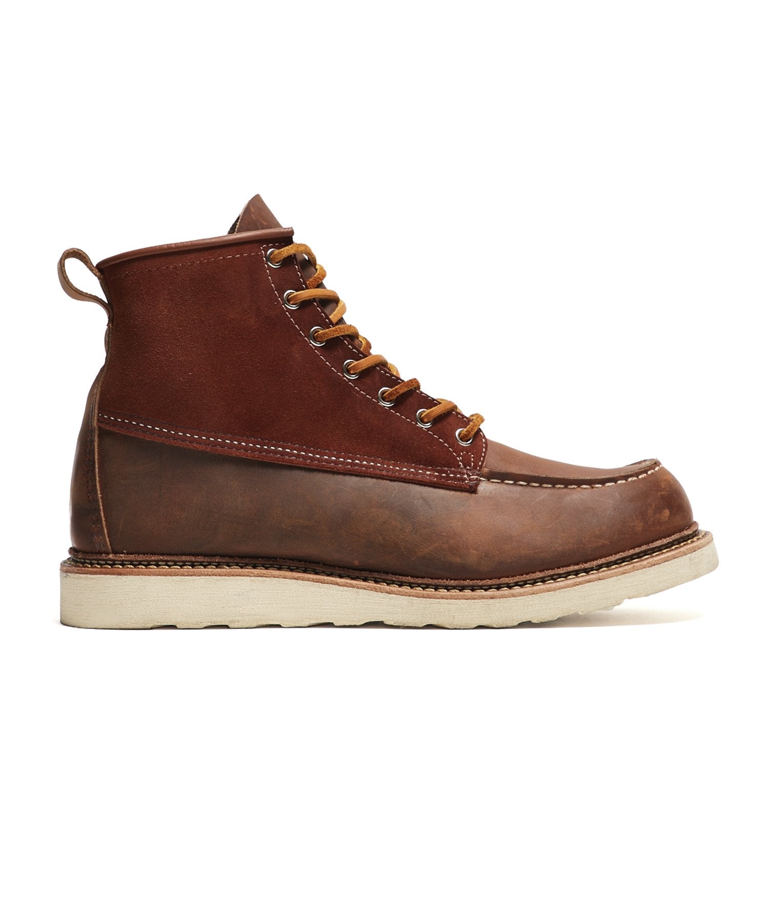 Heritage boots get the haberdashery treatment in Todd Snyder’s new collaboration with legendary American footwear company Red Wing Shoes, who since 1905 have been making premium work boots that are stylish and comfortable enough for all-day wear. This fresh release is inspired by the 877 classic moc boot, an iconic Red Wing safety shoe style that’s been worn by millions of American workers and even an American president (Dwight D. Eisenhower) since its introduction in the the middle of the last century.