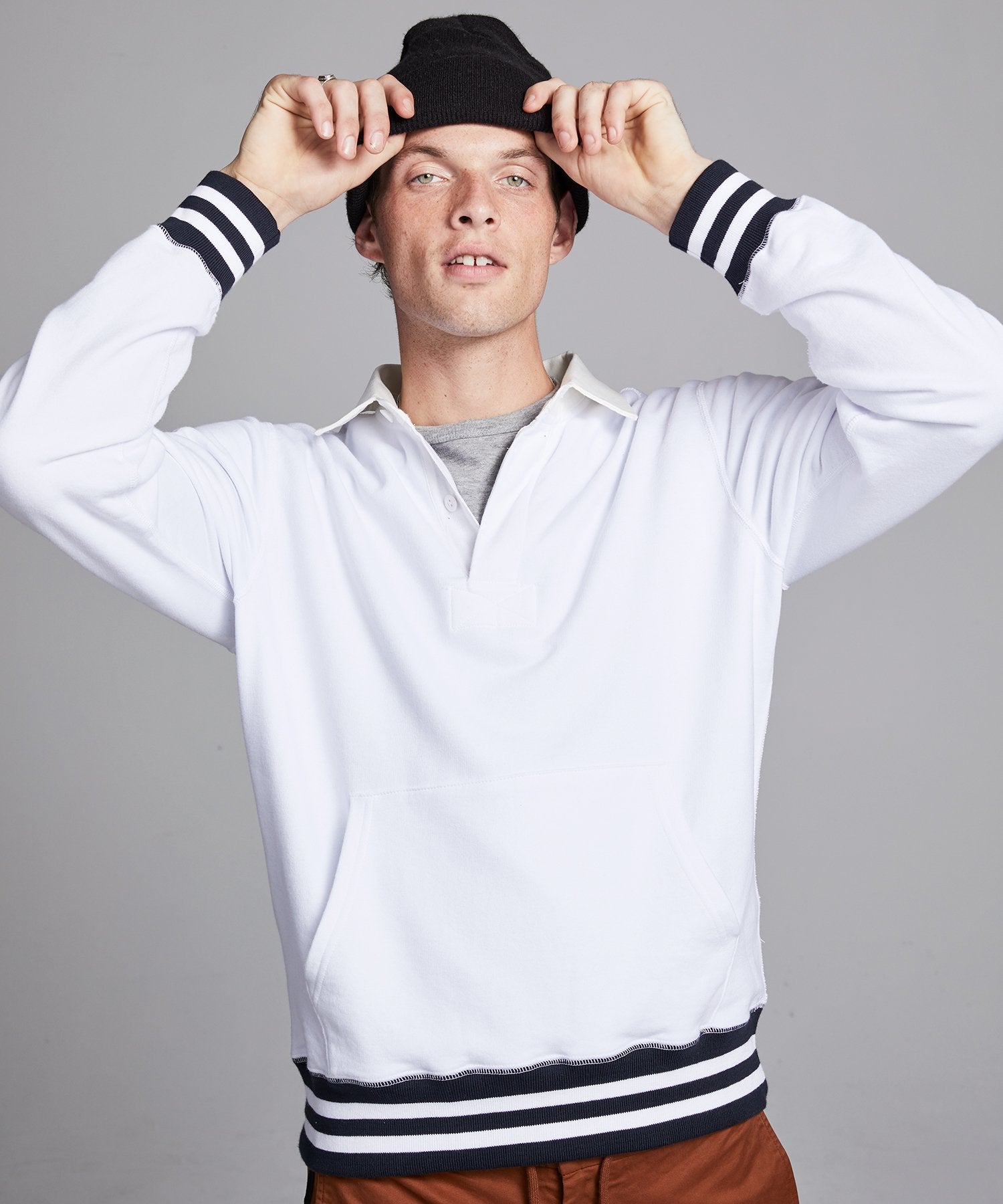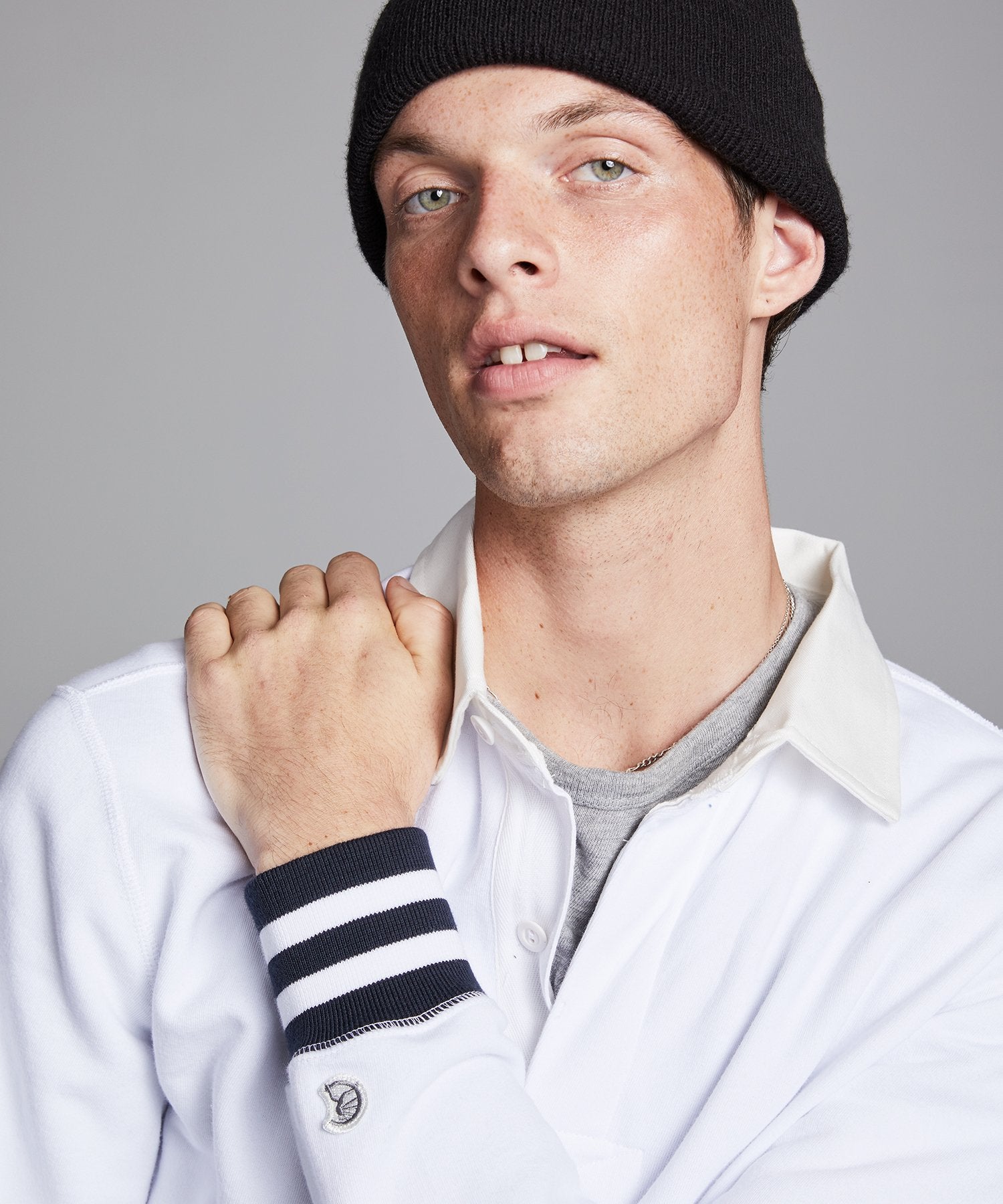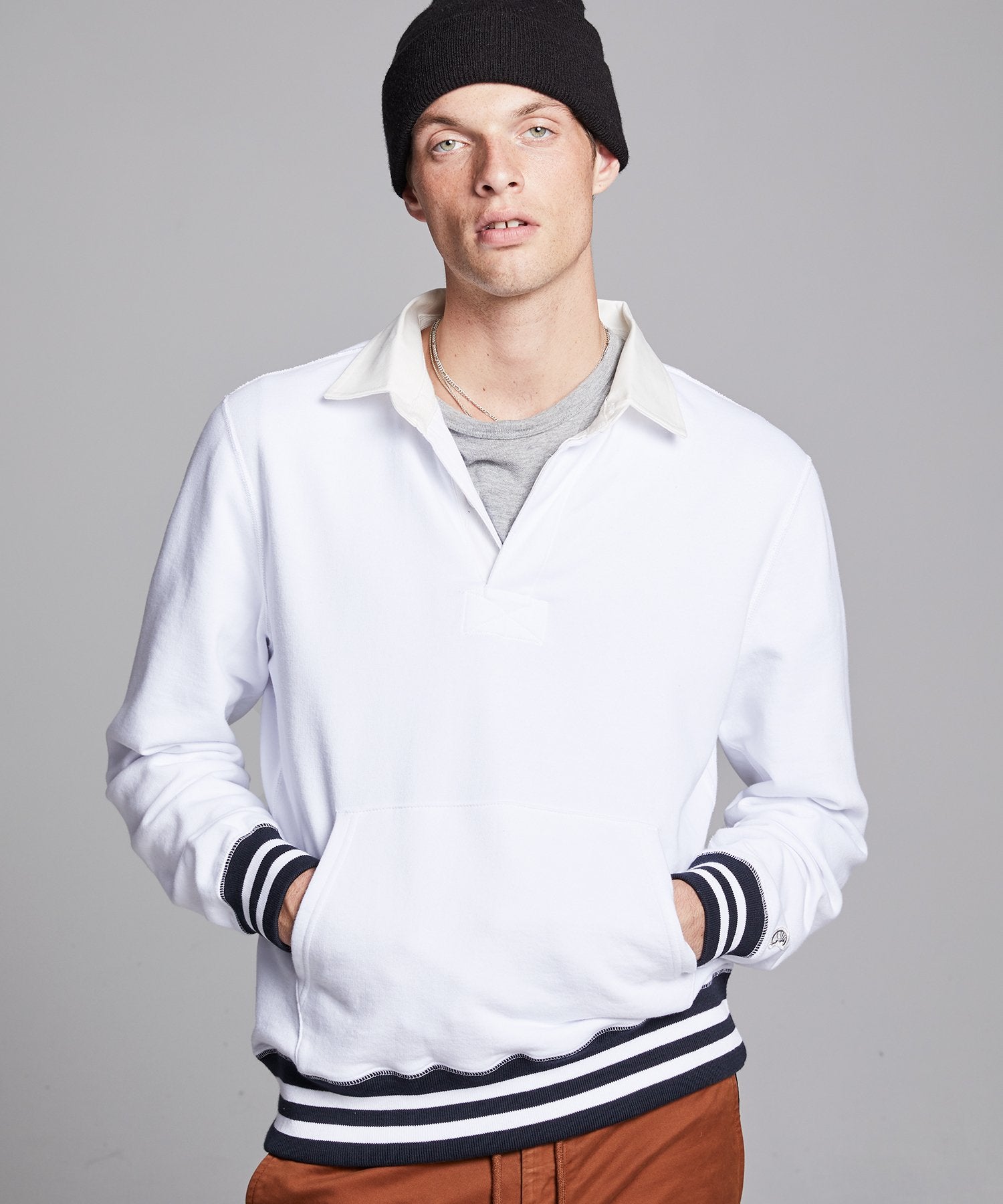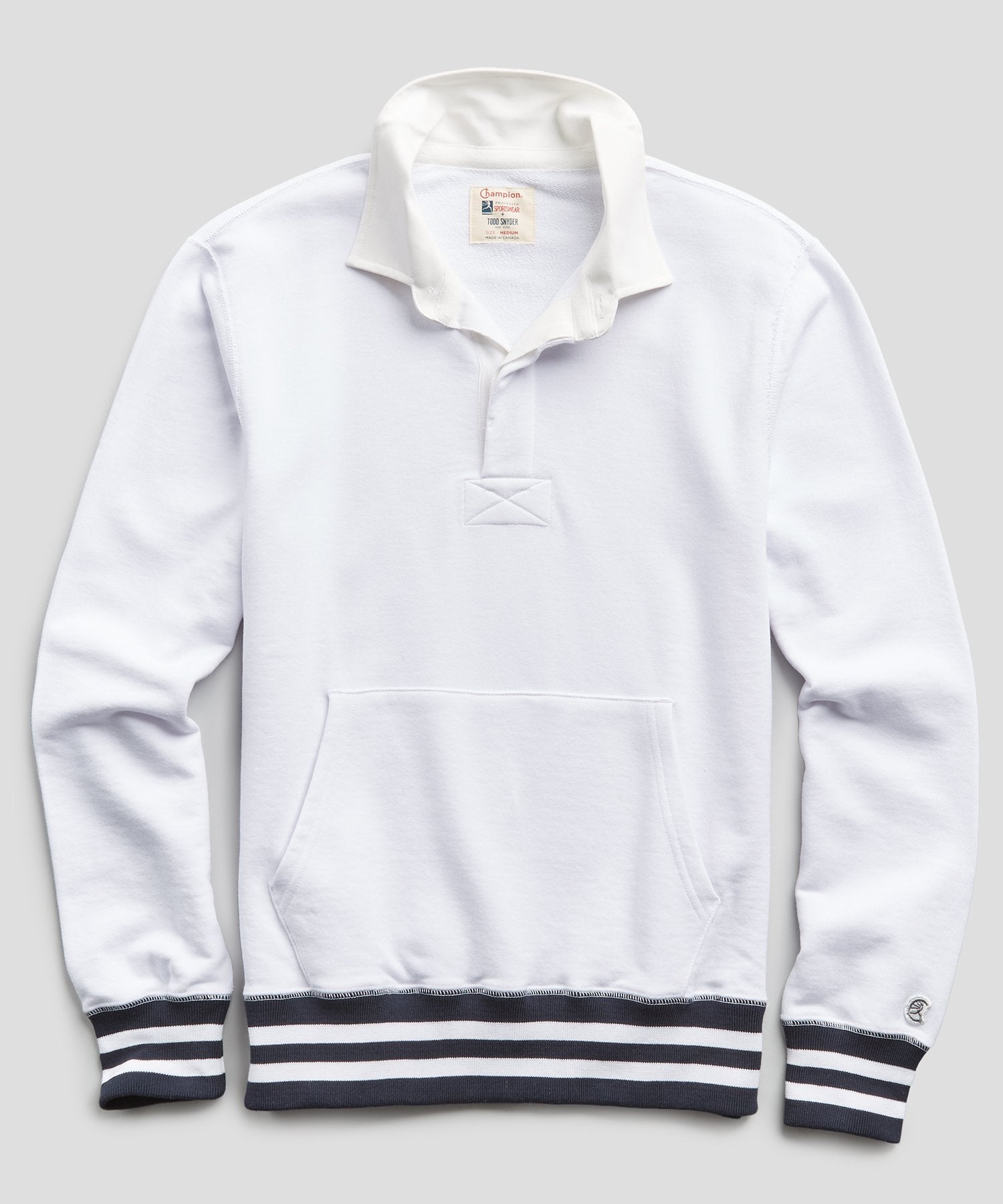 Our updated Rugby Sweatshirt is a grownup riff on the classic vintage sport-inspired style. Smart enough for brunch with your crew or thrown on to run weekend errands, it’s crafted from 16 oz French terry—giving it a lightweight body and drape—it features premium details like yarn-dyed tipped rib at waistband and cuff and is finished with herringbone twill-covered placket with traditional rubber buttons. Our premium Champion knitwear is exclusively designed and manufactured by Todd Snyder.
