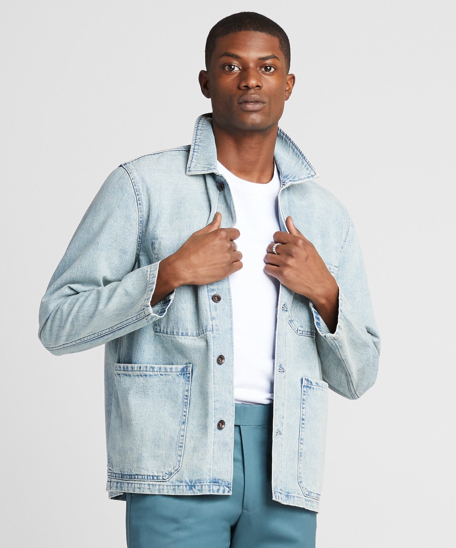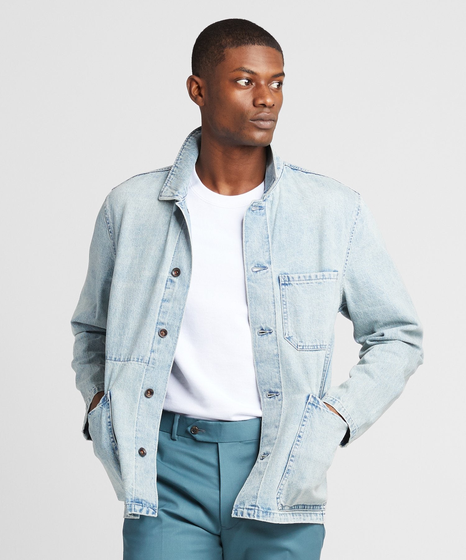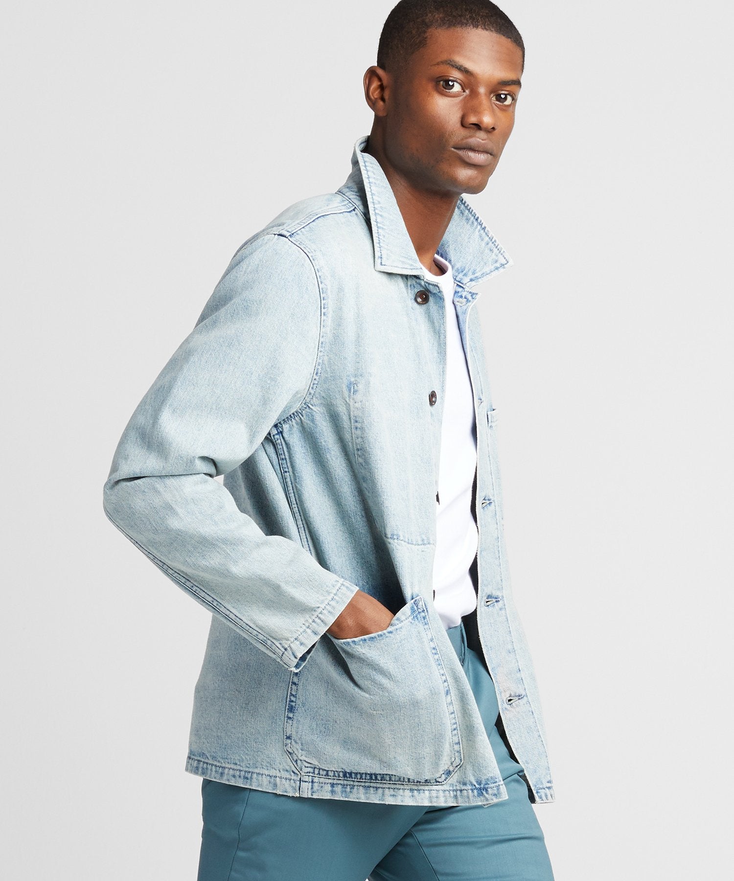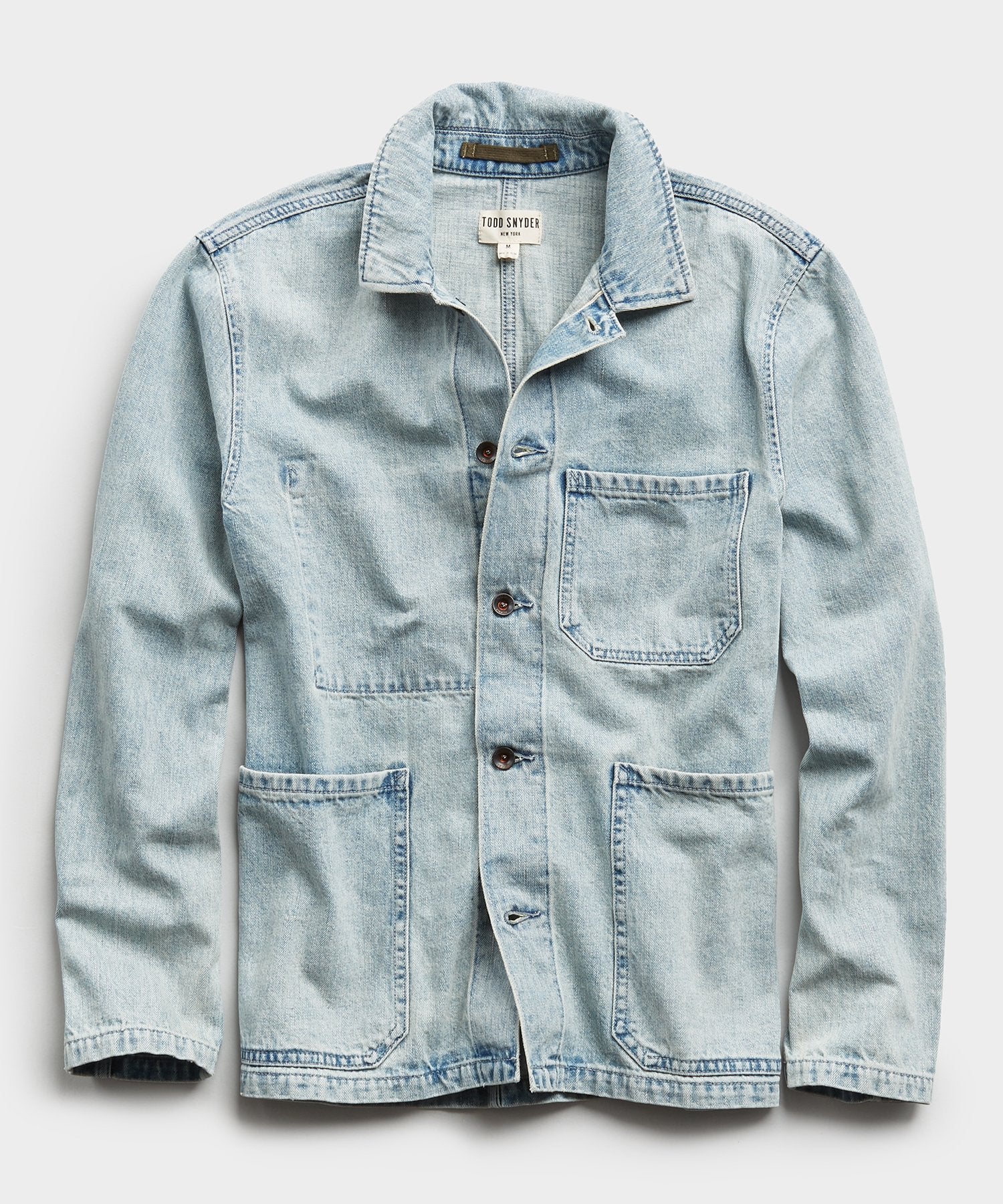 Our version of the utilitarian classic, inspired by a vintage garment and remade in a premium lightweight medium indigo denim from Japan that will wash down and break in beautifully over time—just like your favorite pair of jeans. Finished with premium details from the single interior pocket to shank buttons.