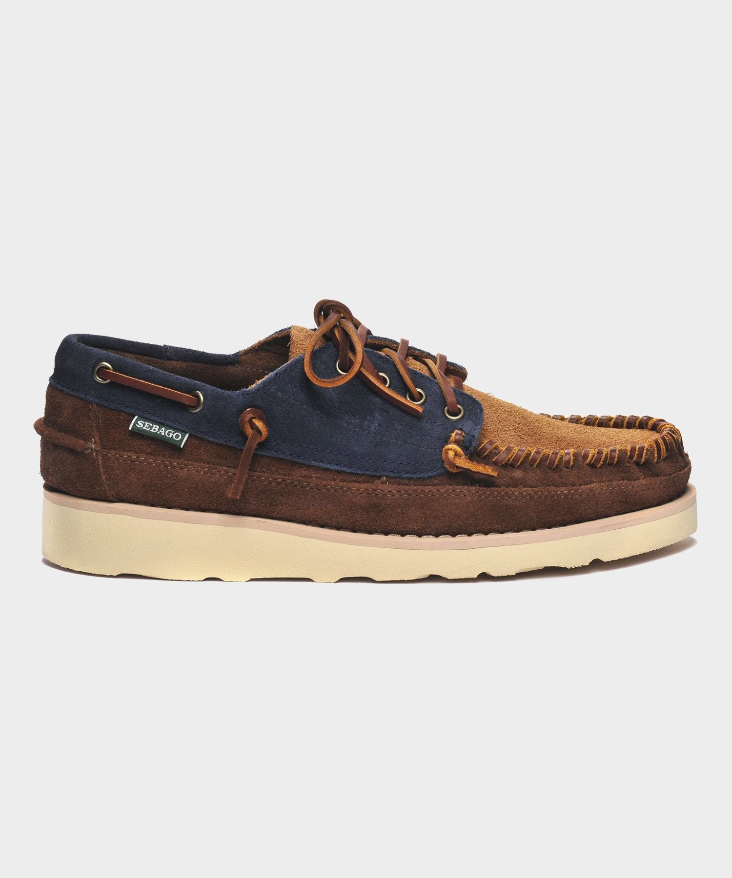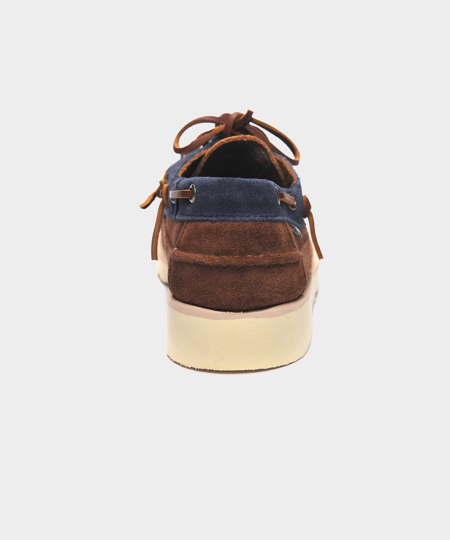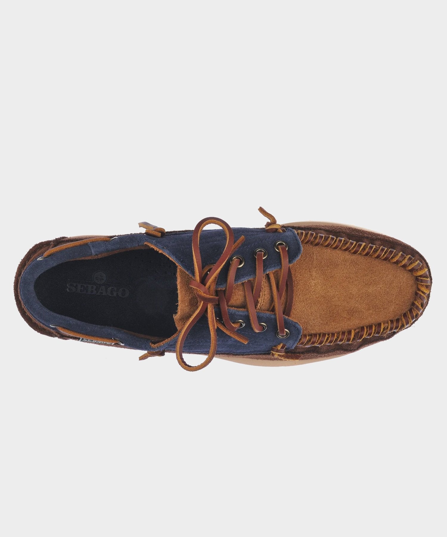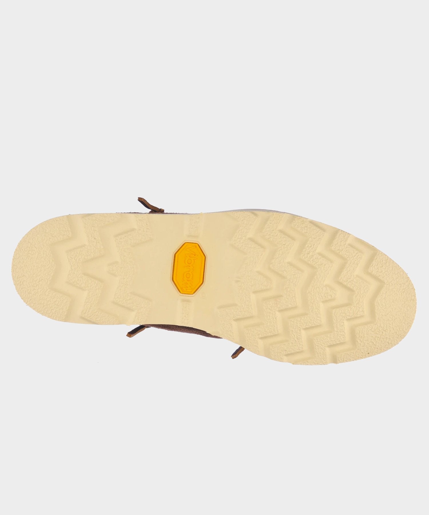 These robust outdoors mocs were handcrafted with suede especially waxed with oils to obtain a fresh and soft touch. Hand-sewn with the finest craftsmanship after the Native American shoe-making technique, these iconic outdoors mocs feature a 3 coloured hand-sewn upper with moc-toe tubular construction , rawhide laces and a lightweight EVA die-cut sole for comfort and shock absorption. Heat embossed logo on the side.