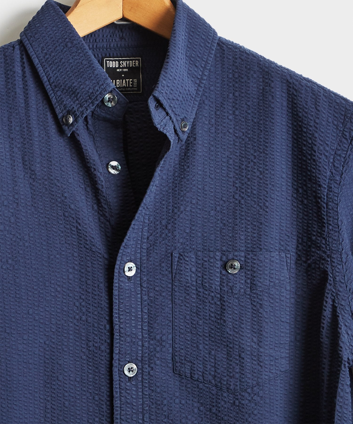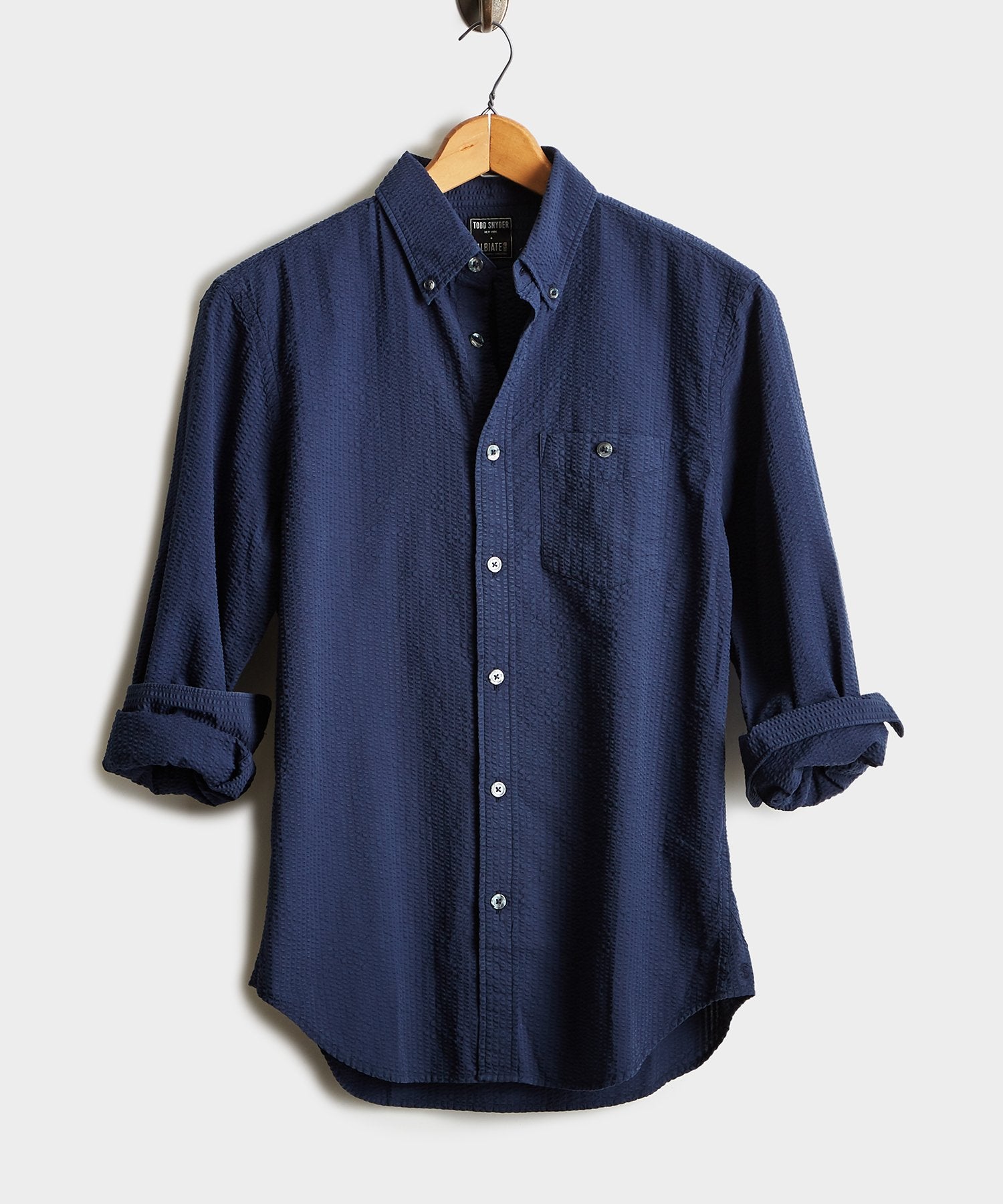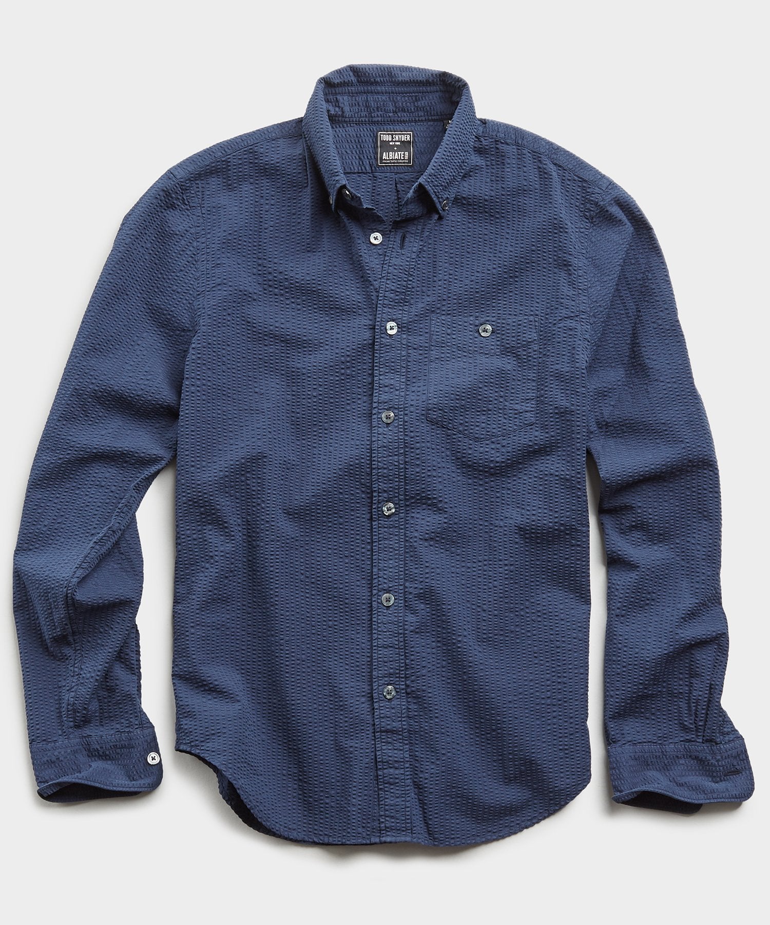 Italian Seersucker Long Sleeve Shirt in Navy