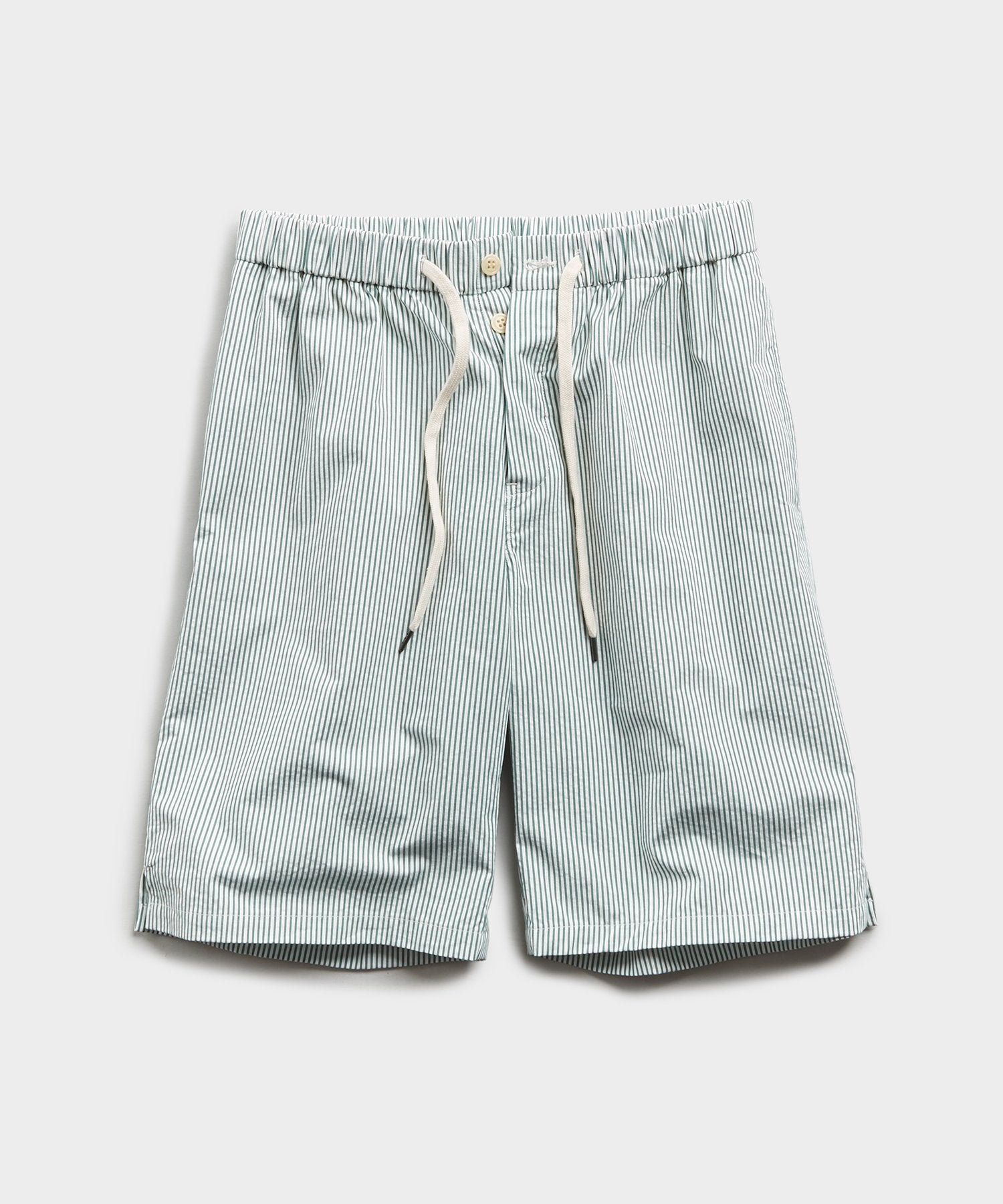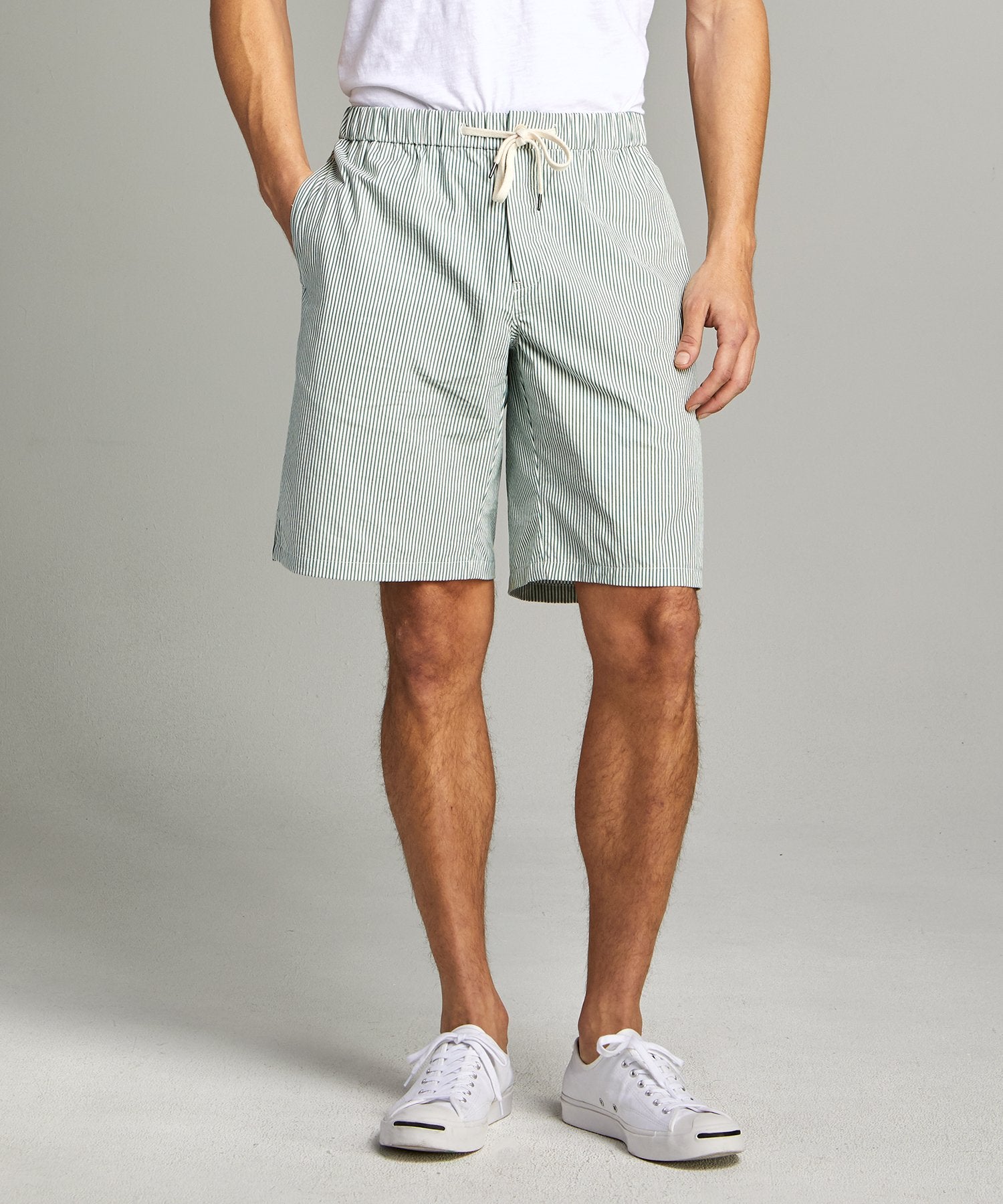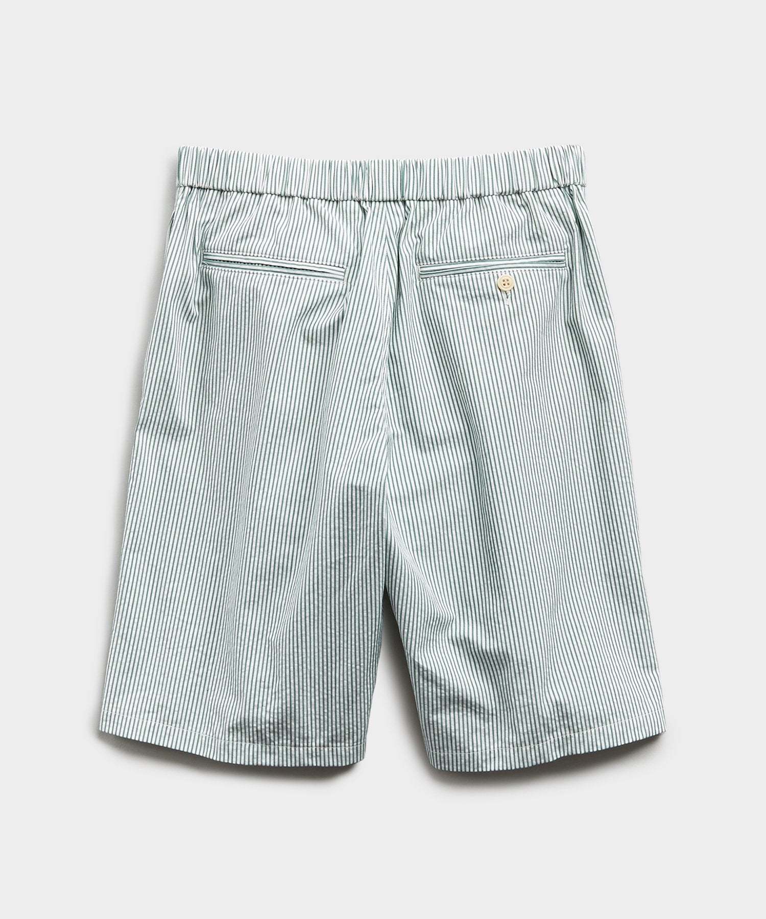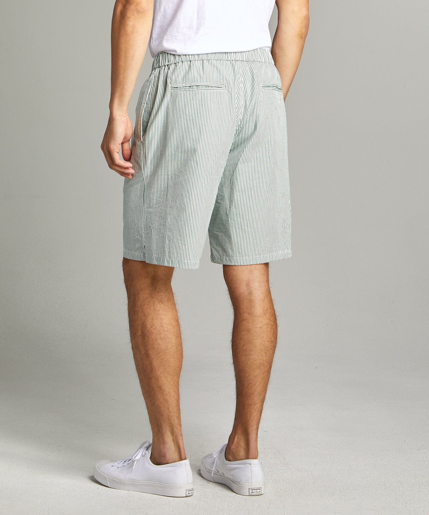 With a modern trim fit for every guy, the blue seersucker traveler short is our take on casual suiting with an easy to wear elastic drawcord waist. Made in Portugal in a factory renowned for it’s tailoring, this short is the perfect way to add a twist to your springtime suiting and find a staple that looks as good with a button-down and matching jacket or with a tee and overshirt for a laid-back vibe.