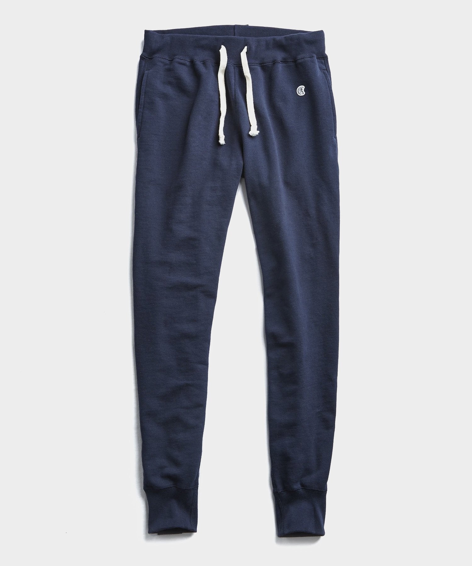 Part of our Foundation Collection — premium knitwear that plays equally well with sweats or suits — this slim jogger is crafted from softly structured French terry in a family-owned factory in Toronto. A more closely cut version of our classic sweatpant, it’s garment dyed for a lived-in texture and a unique, well-loved look. Finished with elasticated cuffs, two slash pockets, and a cotton herringbone tubular tape drawstring whose ends are hand-tied by the craftsmen in our Toronto factory. Created in collaboration with iconic American athletic brand Champion Sportswear, and exclusively designed and manufactured by Todd Snyder.