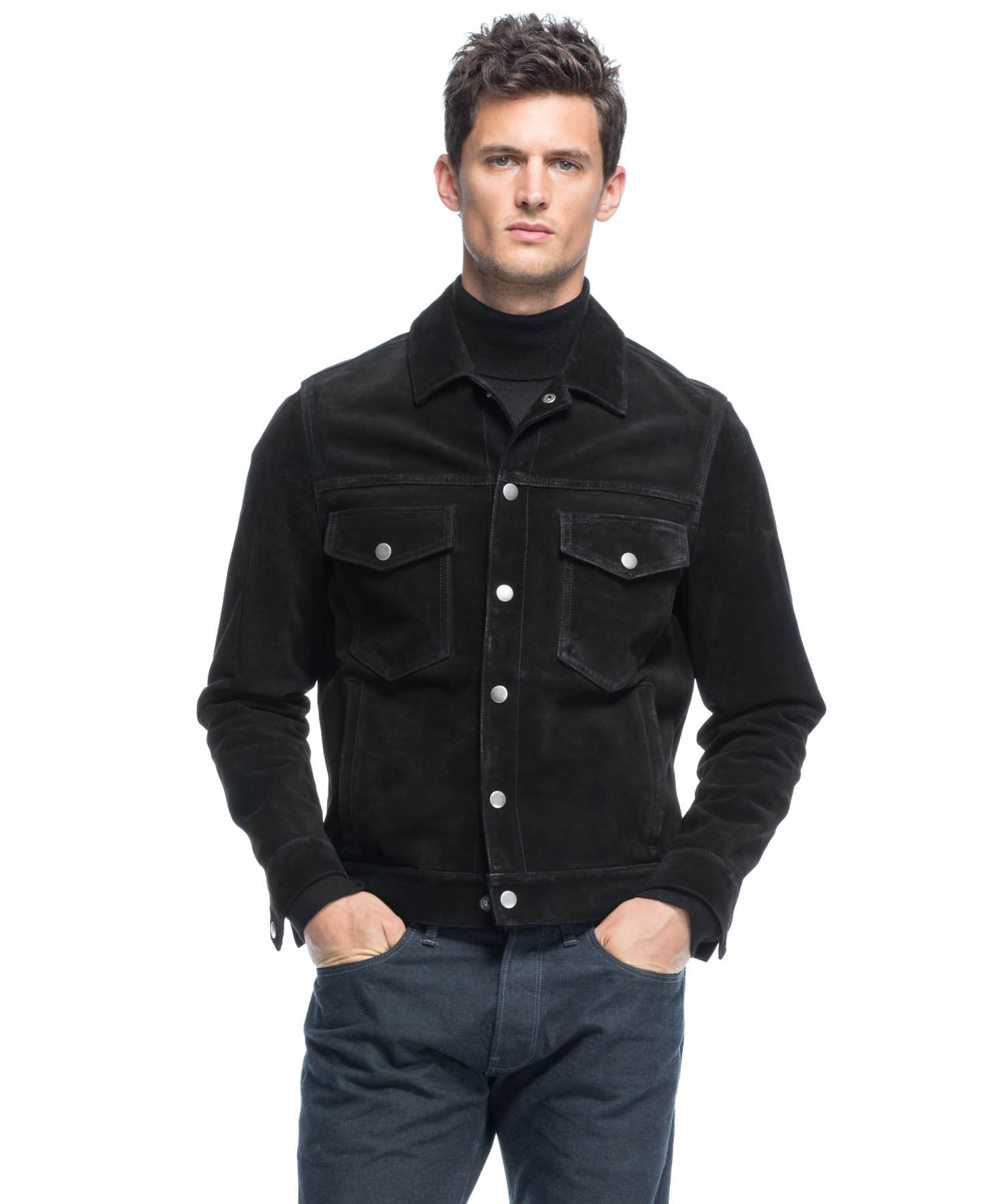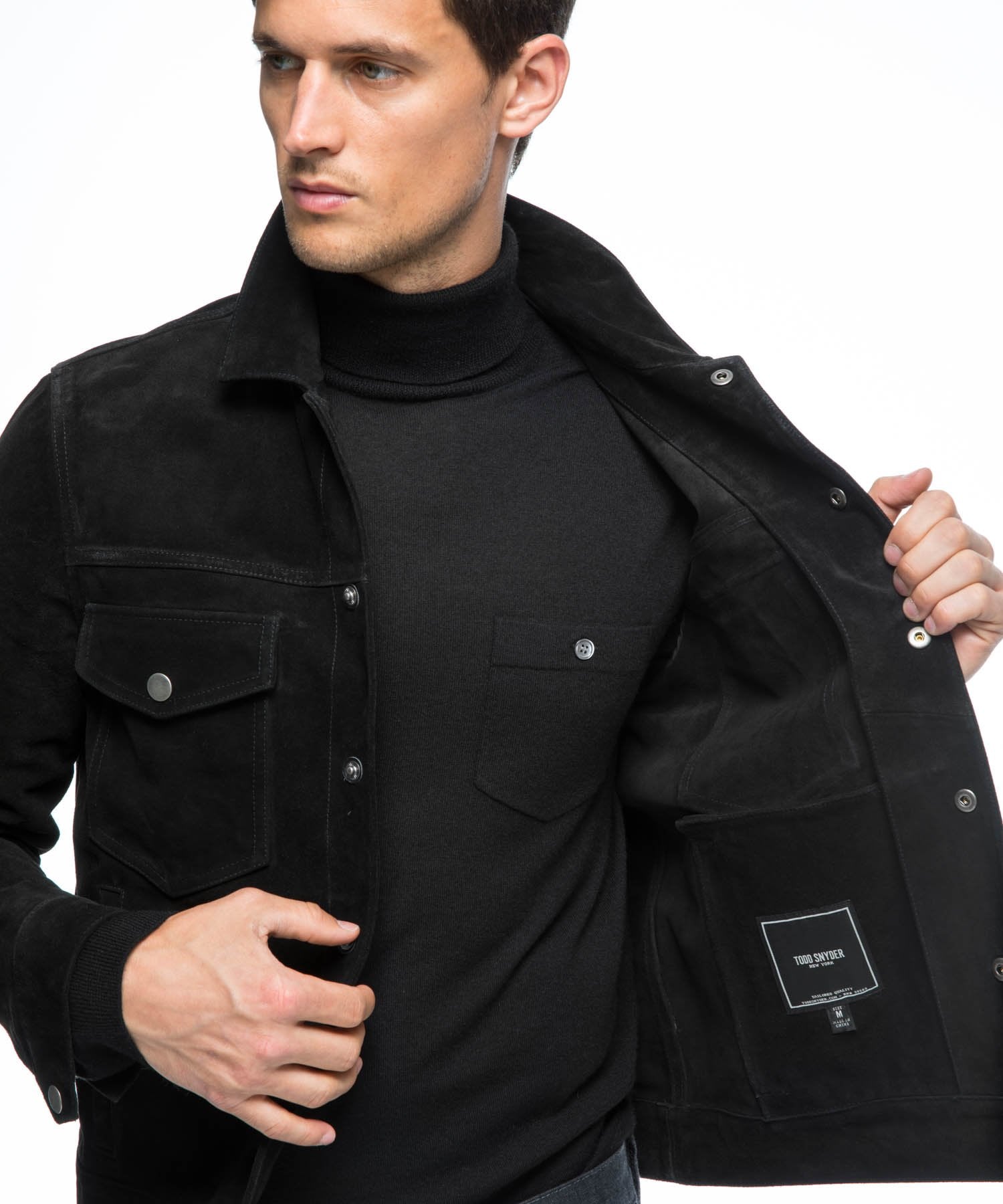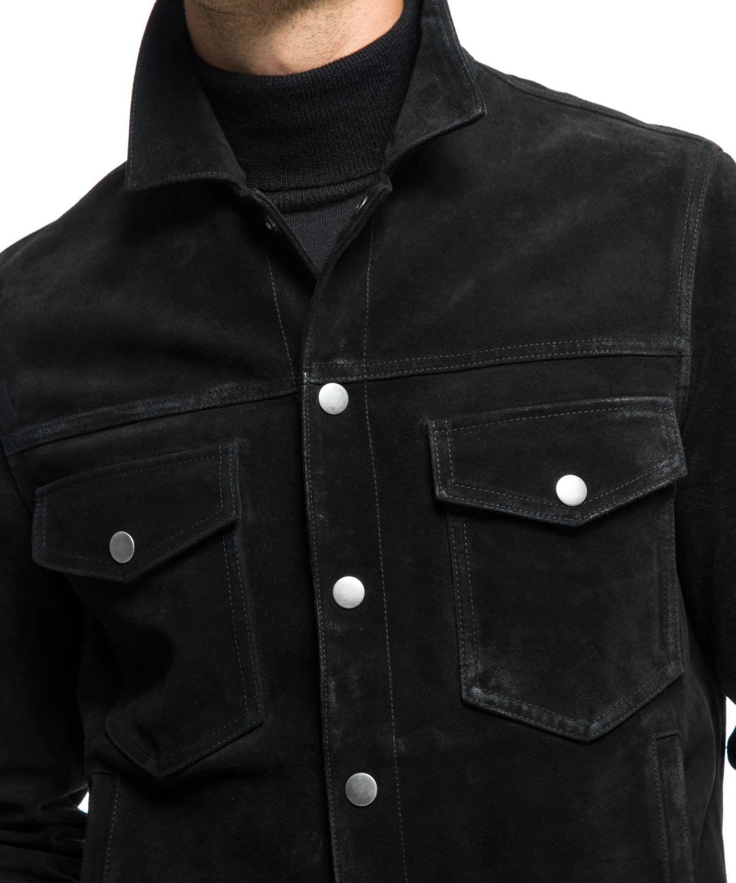 This essential layering piece is crafted from premium suede with timeless styling. Made in Italy with two snap button pockets for a smart casual look and feel.