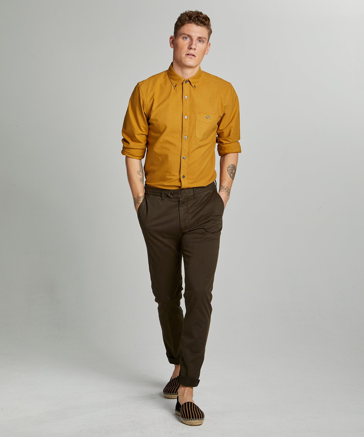 Tailored office trouser meets utilitarian workwear in our versatile new tab front chino. Essential every day of the week, this modern staple pulls double duty on weekends, with just the right amount of stretch for casually polished ease. Garment-dyed with a zip fly and classic styling.