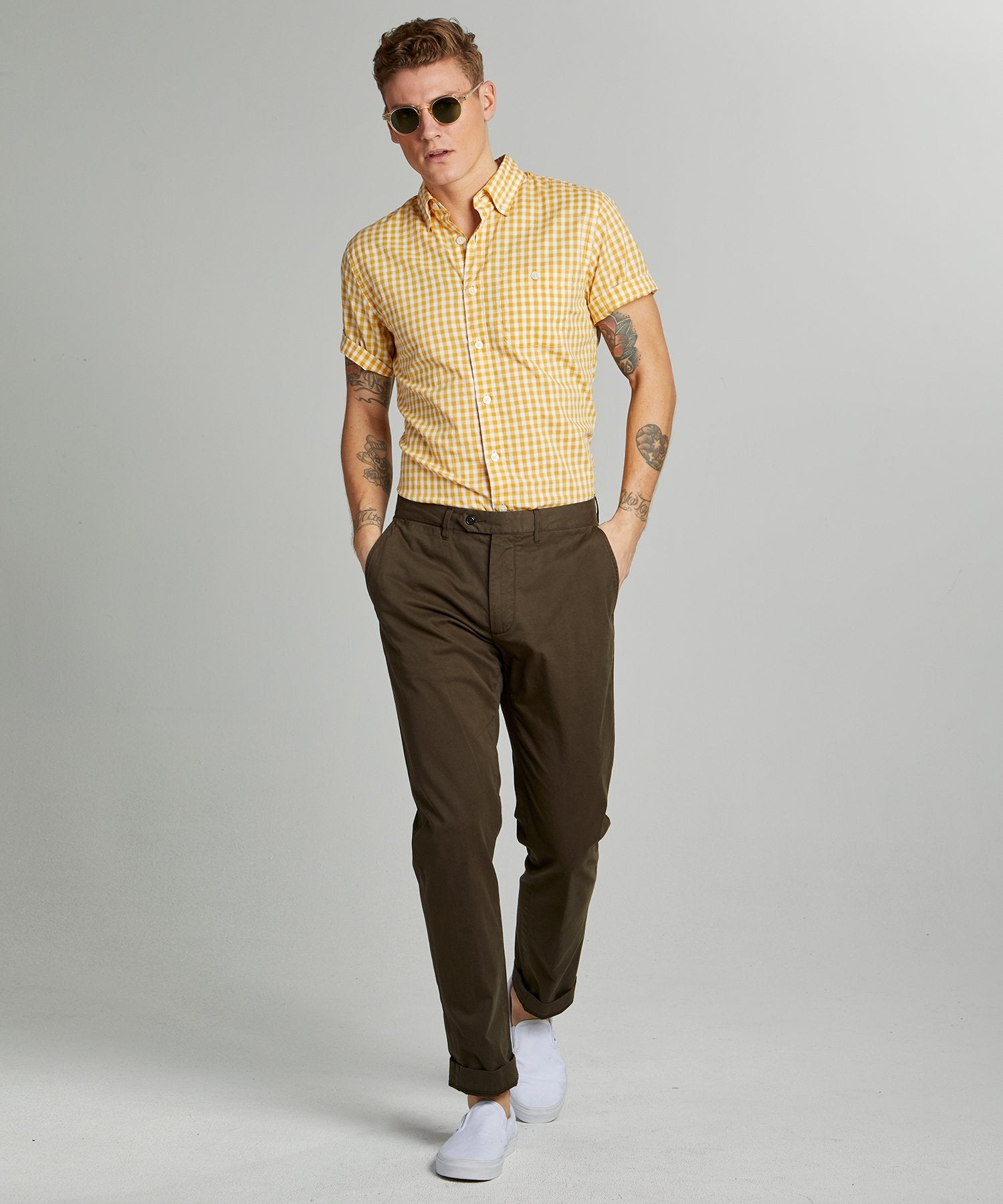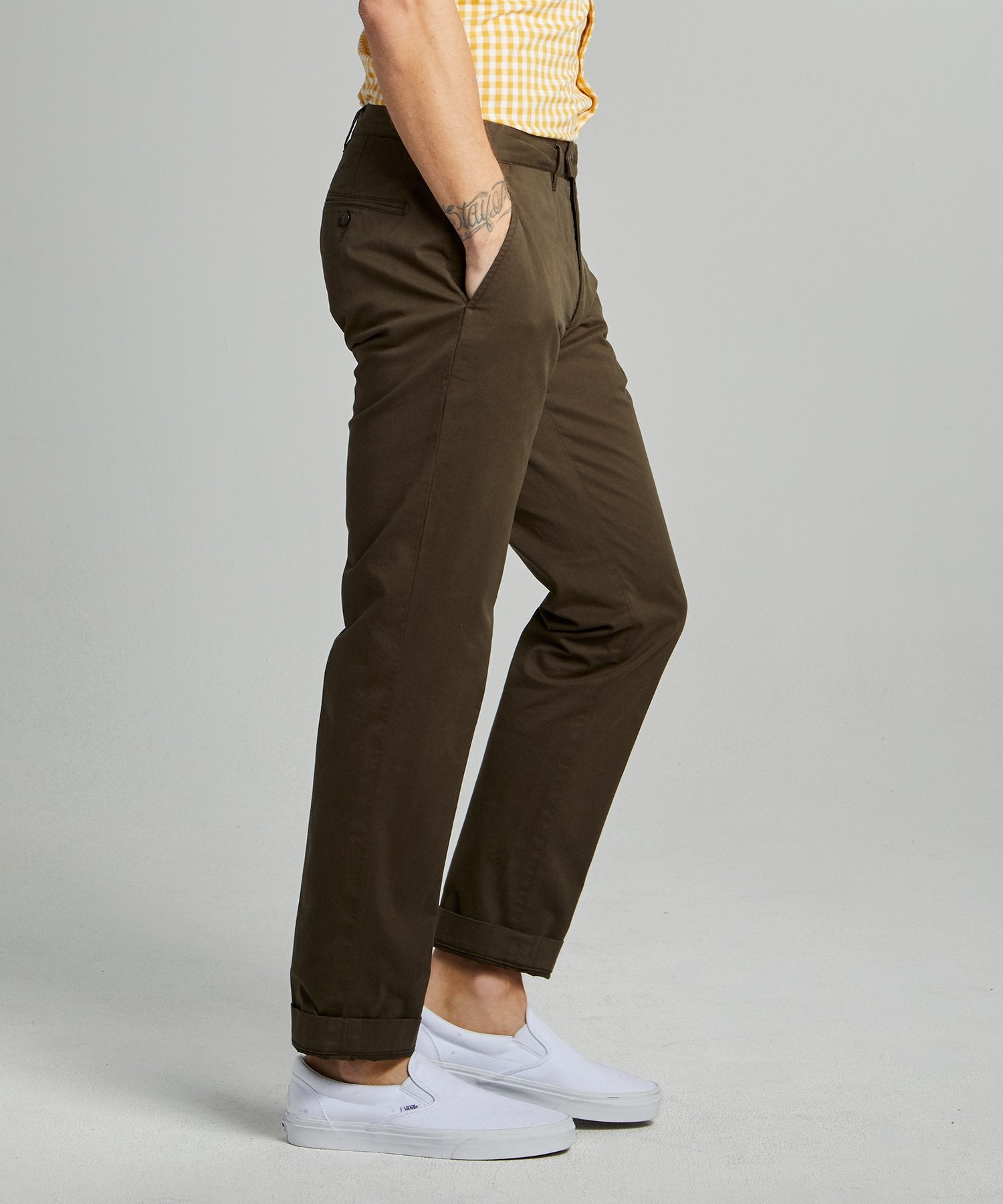 Tailored office trouser meets utilitarian workwear in our versatile new tab front chino. Essential every day of the week, this modern staple pulls double duty on weekends, with just the right amount of stretch for casually polished ease. Garment-dyed with a zip fly and classic styling.
