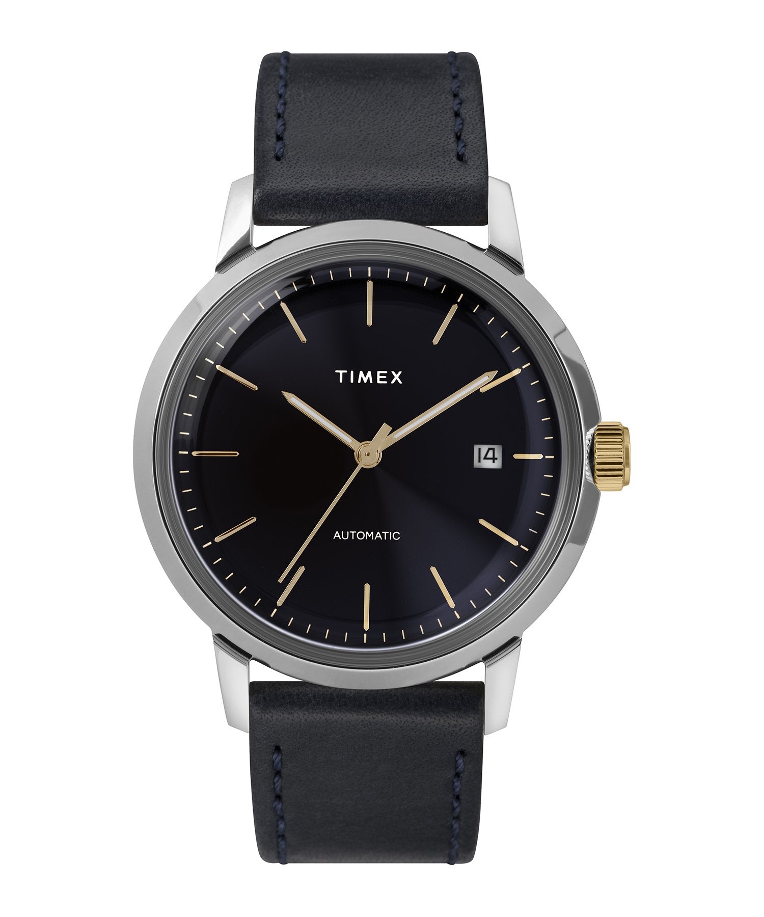 Timex's iconic 1960s Marlin® case gets an aesthetic refresh. Ticking inside is a tried and true 21 jewel automatic movement, creating a contemporary timepiece that honors our watchmaking history. True to their original Marlin® design, the stainless steel case with gold-tone accents and navy dial are complemented by a classic navy leather strap, featuring leather from the S.B. Foot Tanning Company, and its iconic domed acrylic crystal. KEEP ON TICKING®