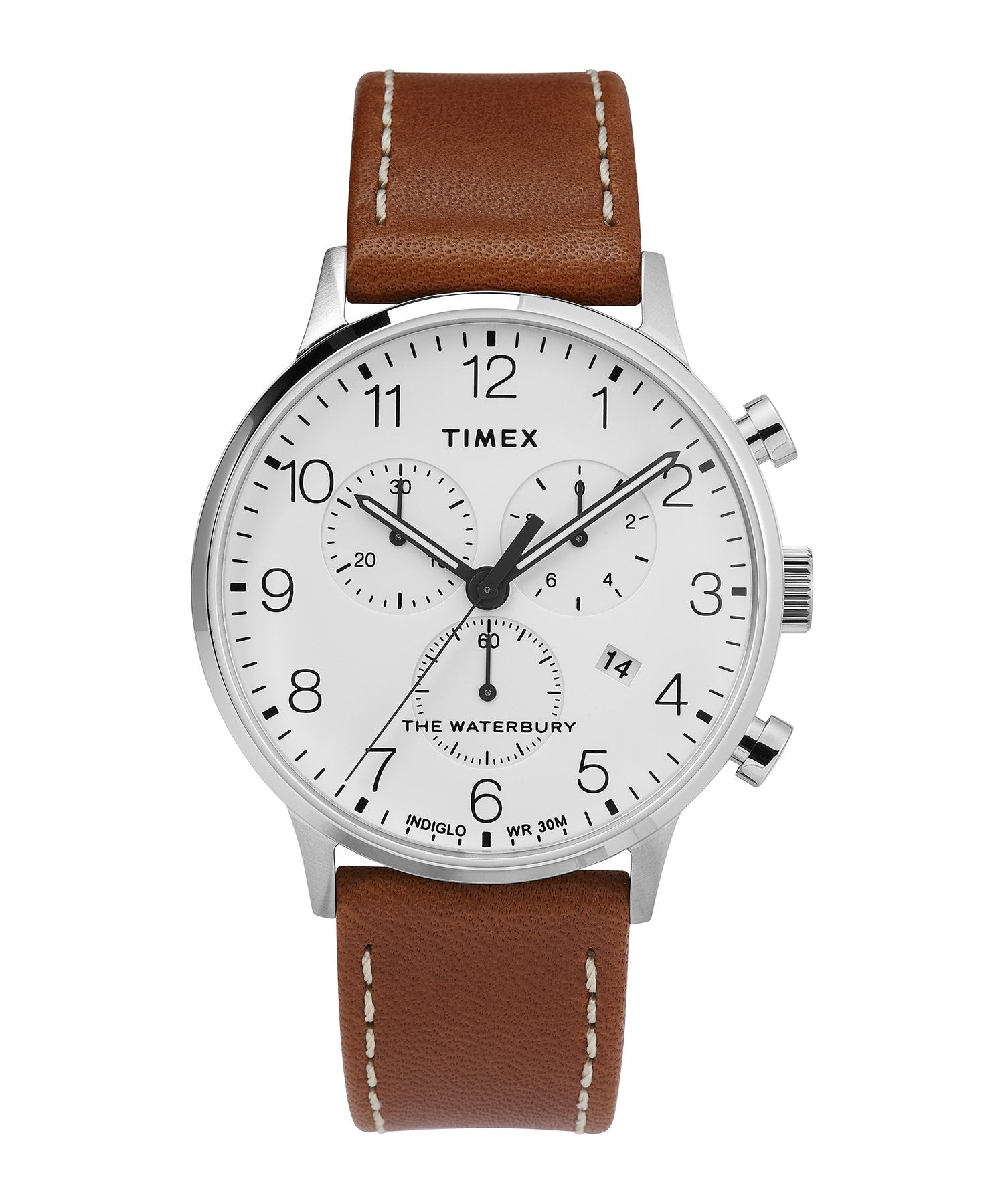 There is strength in tradition. This collection is an update to a true classic — a timepiece honoring our roots with ageless style. A testament to our commitment to craftsmanship and watchmaking, the Waterbury Classic Chronograph is well-suited for everyday wear with its stainless steel case, tan leather strap and white dial.