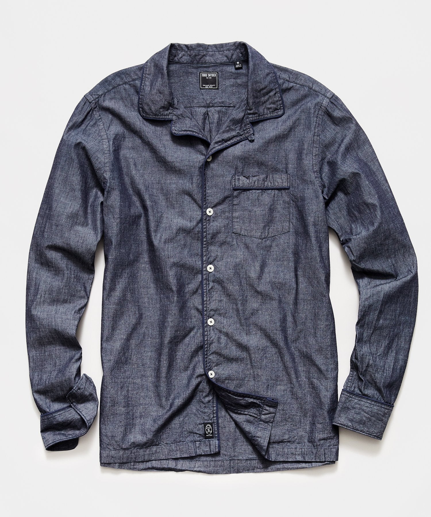 Our bestselling Camp Collar Shirt is back in a long-sleeve style and a soft yet rugged-looking chambray that’s exclusive to us thanks to the specialty fabric merchants at Three Looms. With piping on the placket, collar and pocket, this has a bit of a pajama top vibe making it the epitome of laid-back luxe.