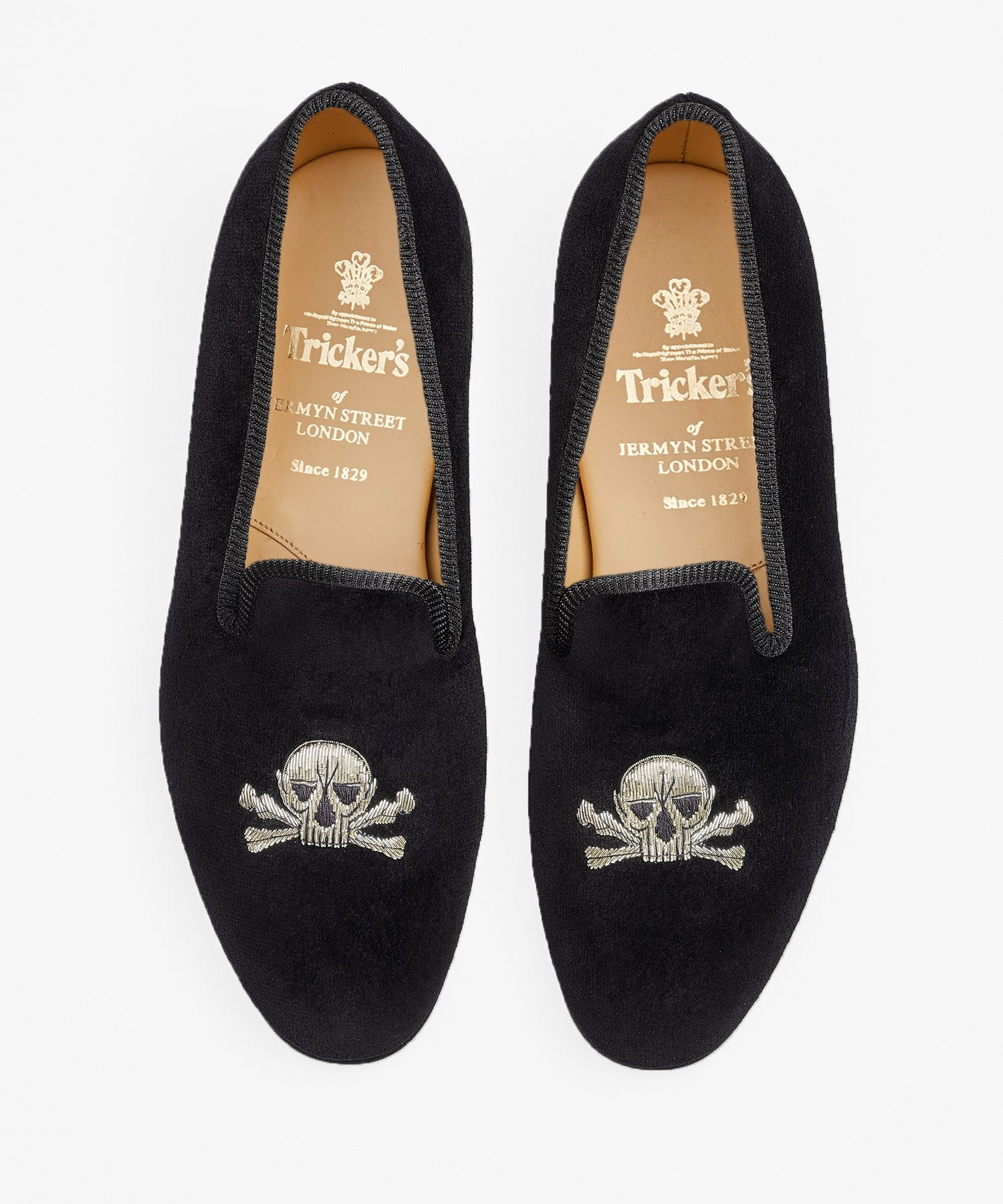 A Skull & Bones crested step in, hand lasted lounge or smoking slipper. Complete with velvet uppers, Red quilited linings and a leather sole. The unsurpassable comfort for when in your home. Please note the slippers do run a little narrow and we advise a half size larger than your usual UK size.