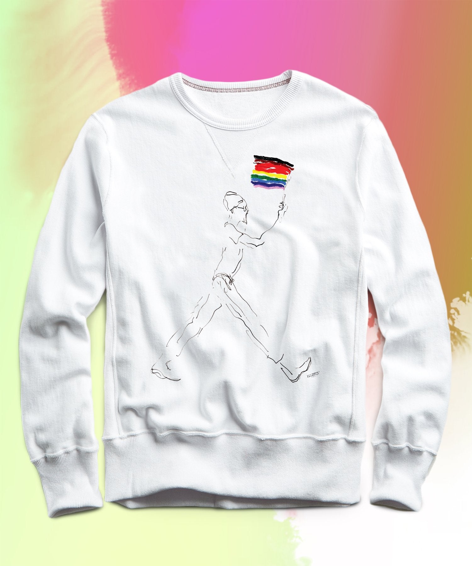 After working as a designer, Richard Haines became a sought-after fashion illustrator thanks to his elegant use of line and color. This extremely-limited edition sweatshirt is part of the Art of Pride capsule, which features original artwork by nine leading LGBTQ artists including Doron Langberg, Shanee Benjamin, and Devan Shimoyama. 25% of the proceeds from the sale of these wearable works of art will be donated to support charities of the artists choosing. Haines’ charity is Visual Aids.