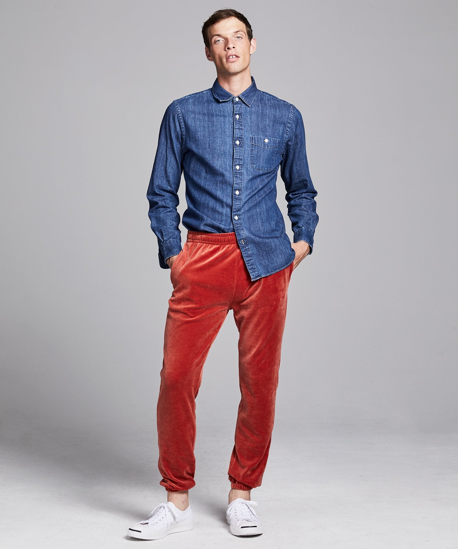 Now sweater weather has arrived it’s time to get your loungewear in high rotation. Our velour sweatpants play well with a simple tee or shirt jacket and look as good as they feel. Detailed with side seam and back welt pockets, they also have elastic cuffs and waistband with an interior drawcord for ease of wear.
