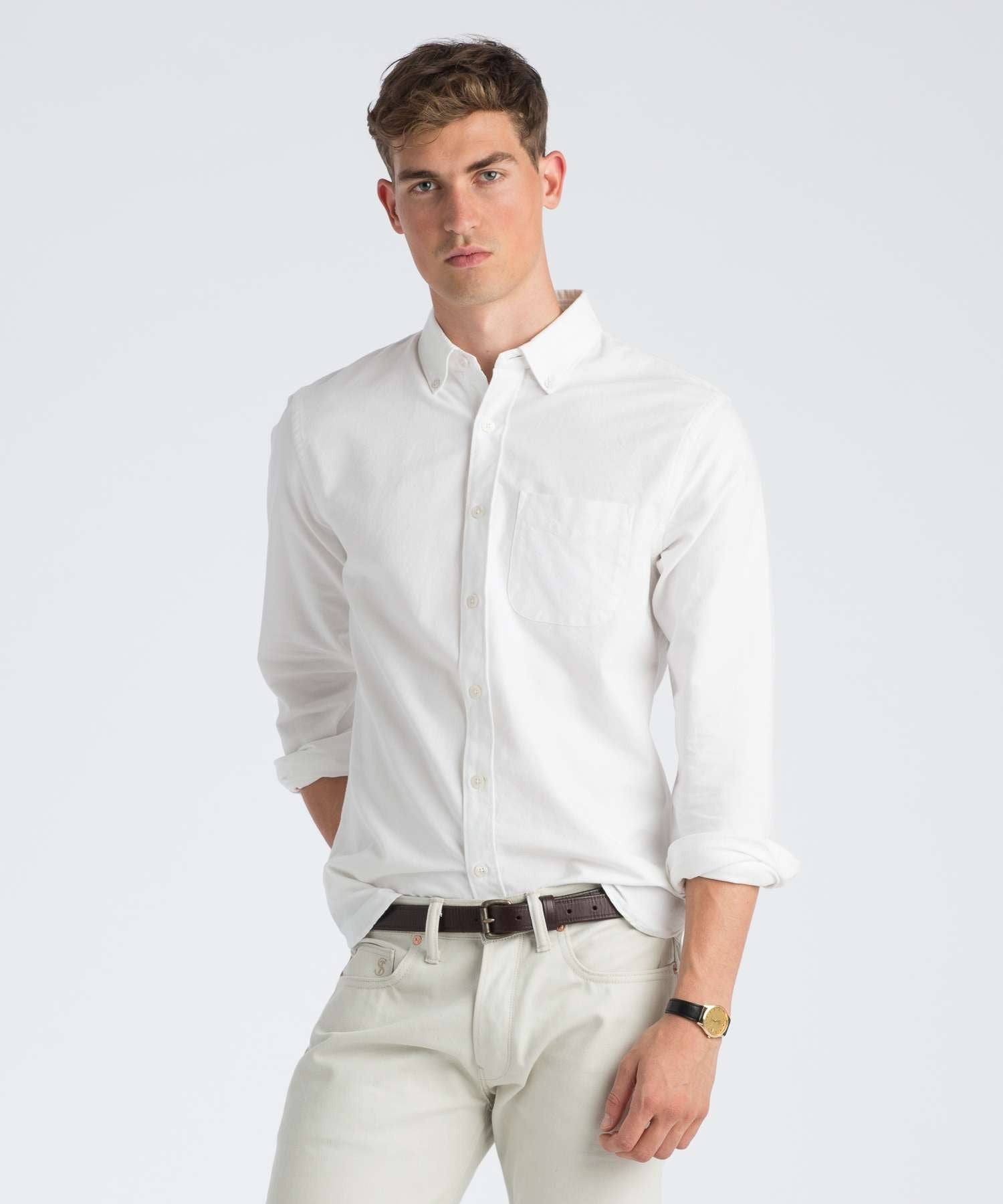 Made the old fashioned way on a vintage loom our collection of Selvedge Shirts are detailed with a classic button-down collar and utility chest pocket. Impeccably woven with Japanese selvedge oxford cloth for an exquisitely soft feel that's meant to get better with age.