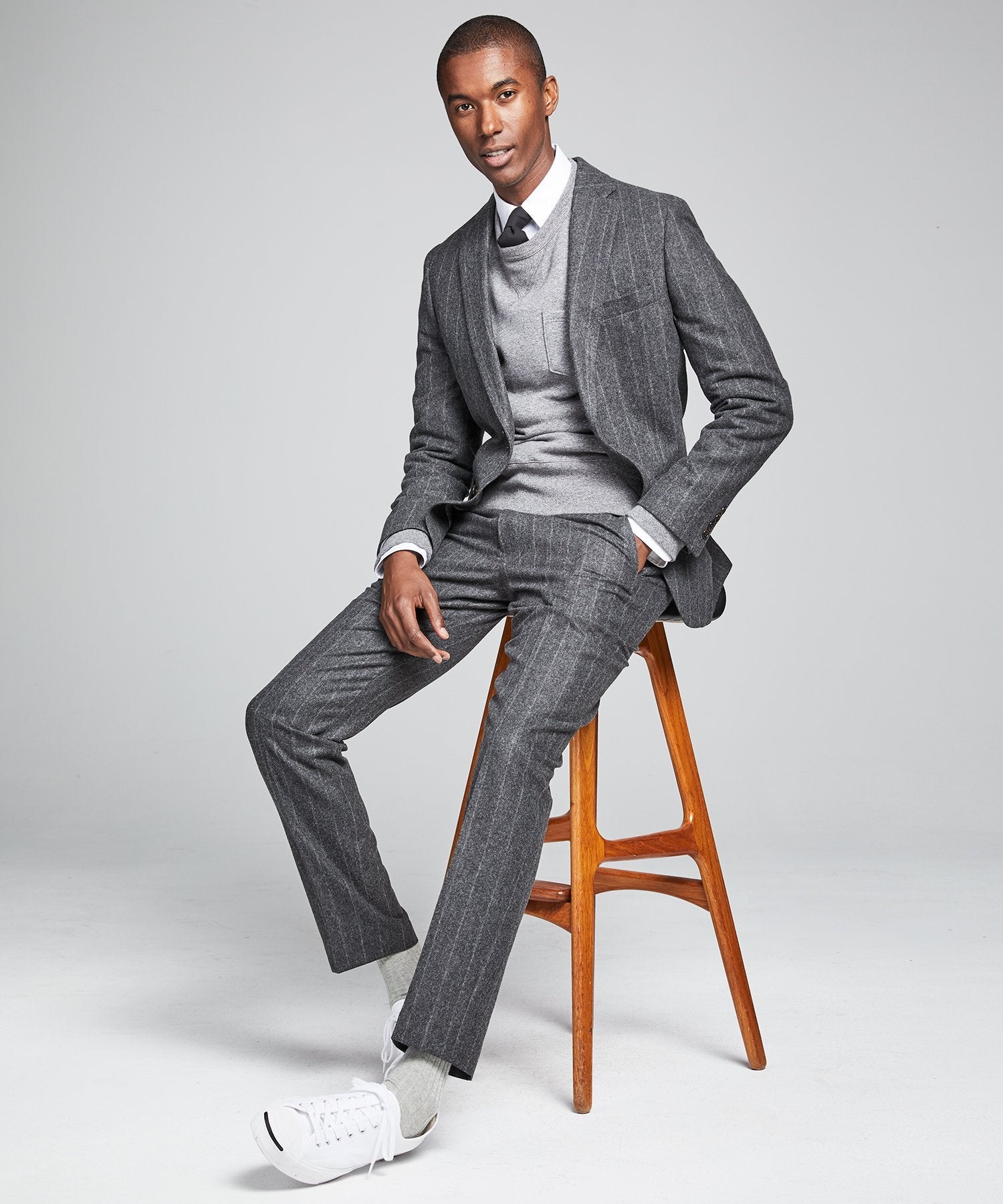 Our Sutton Charcoal Wool Stripe Suit is crafted with a modern tailored fit for every guy. It's a versatile and classic style. Made in Canada from a premium Italian wool blend from the renowned Solbiati mill, the suit has a rich charcoal base with a shadow stripe.